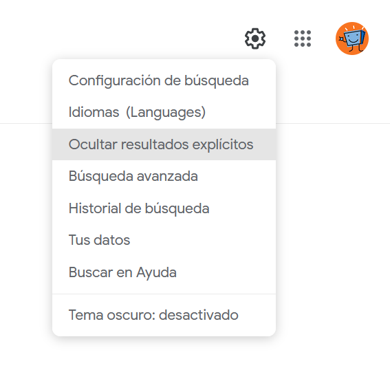 El buscador de Google cuenta con varios sistemas, herramientas y políticas diseñados para ayudar a las personas a encontrar contenidos en la web sin llevarse “sorpresas desagradables de contenidos para adultos”. Para acceder a ellas basta con hacer clic en el icono de la “rueda de configuración” y activar o desactivar la opción “Ocultar / Mostrar resultados explícitos”.
